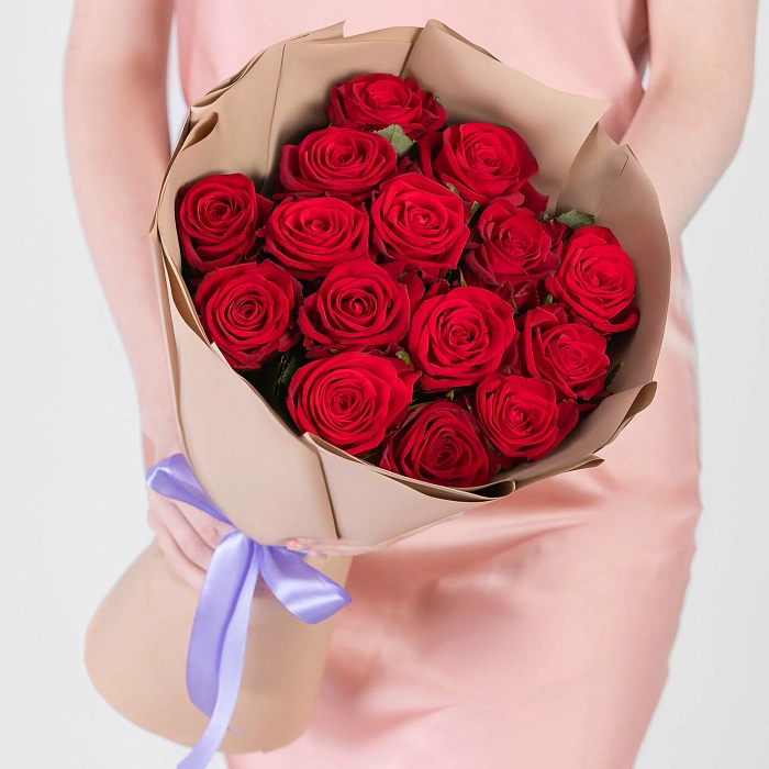 15 красных роз в оформление