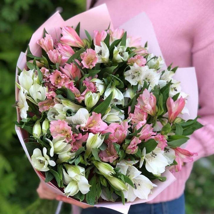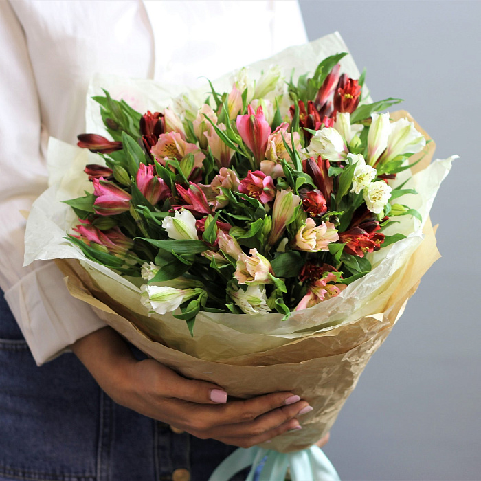 5 альстромерий с зеленью